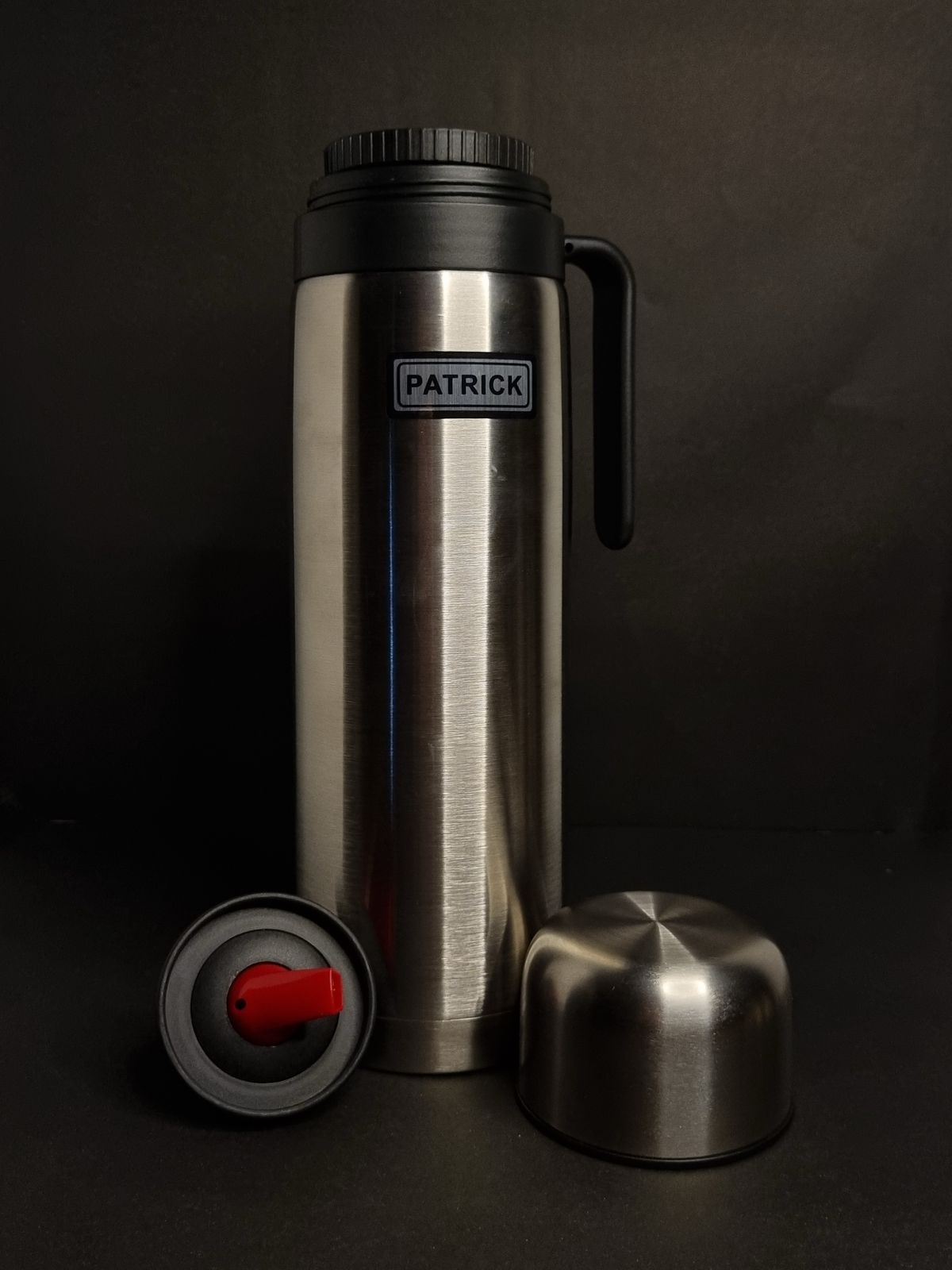 El termo Patrick de 1 litro ofrece gran capacidad térmica, diseño resistente y tapa multifuncional, ideal para mantener tus bebidas calientes o frías por horas en cualquier lugar.